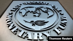 资料照:位于华盛顿的国际货币基金组织大楼前的标识