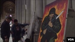 星期一下午,人权和民运组织的工作人员,将30多件以六四为主题的大型艺术品运抵位于纽约曼哈顿西北部的圣约翰大教堂,开始了全美巡展纽约首展。